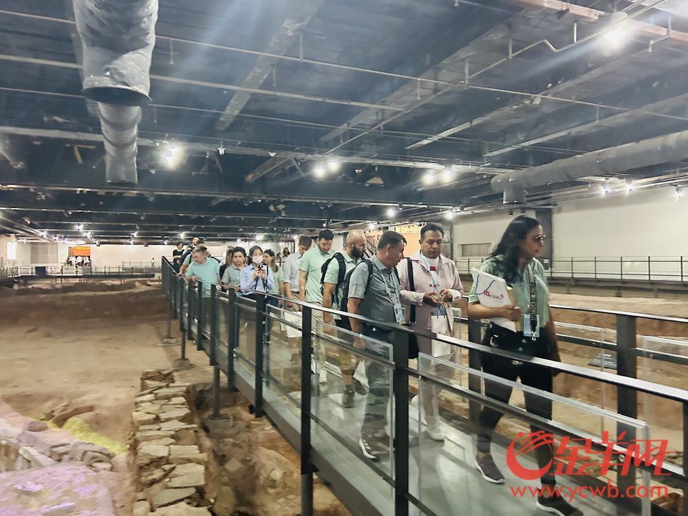 越秀区海丝文化底蕴深厚、资源汇聚,对外商贸交易、文化交流、文明交融的印记深深刻入了城区的肌理和血脉之中。广交会的客商随团来到蕴含城市历史文化的广州城隍庙和南越王博物院(王宫展区)。其中,南越国宫署遗址是越秀区5大海丝史迹点之一,客商们在这里看到广州两千多年的历史文化,从建筑特色中寻到了广州早期对外贸易的印记。