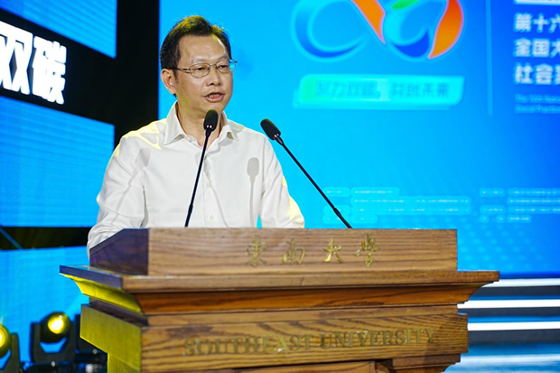 左惟代表承办方东南大学对参加大赛的各位领导嘉宾、专家学者以及千余名全国各兄弟高校的师生们表示欢迎。他希望参赛的同学们勇做推进“绿色低碳科技自立自强”的生力军,依托节能减排竞赛等平台资源,潜心研究、刻苦钻研,在创新中体验知识和科技的无穷魅力,在挑战中收获成长与发展的无限可能,以实际行动投身科技创新实践,在实现中华民族伟大复兴中国梦的伟大征程中放飞青春理想、创造人生价值。