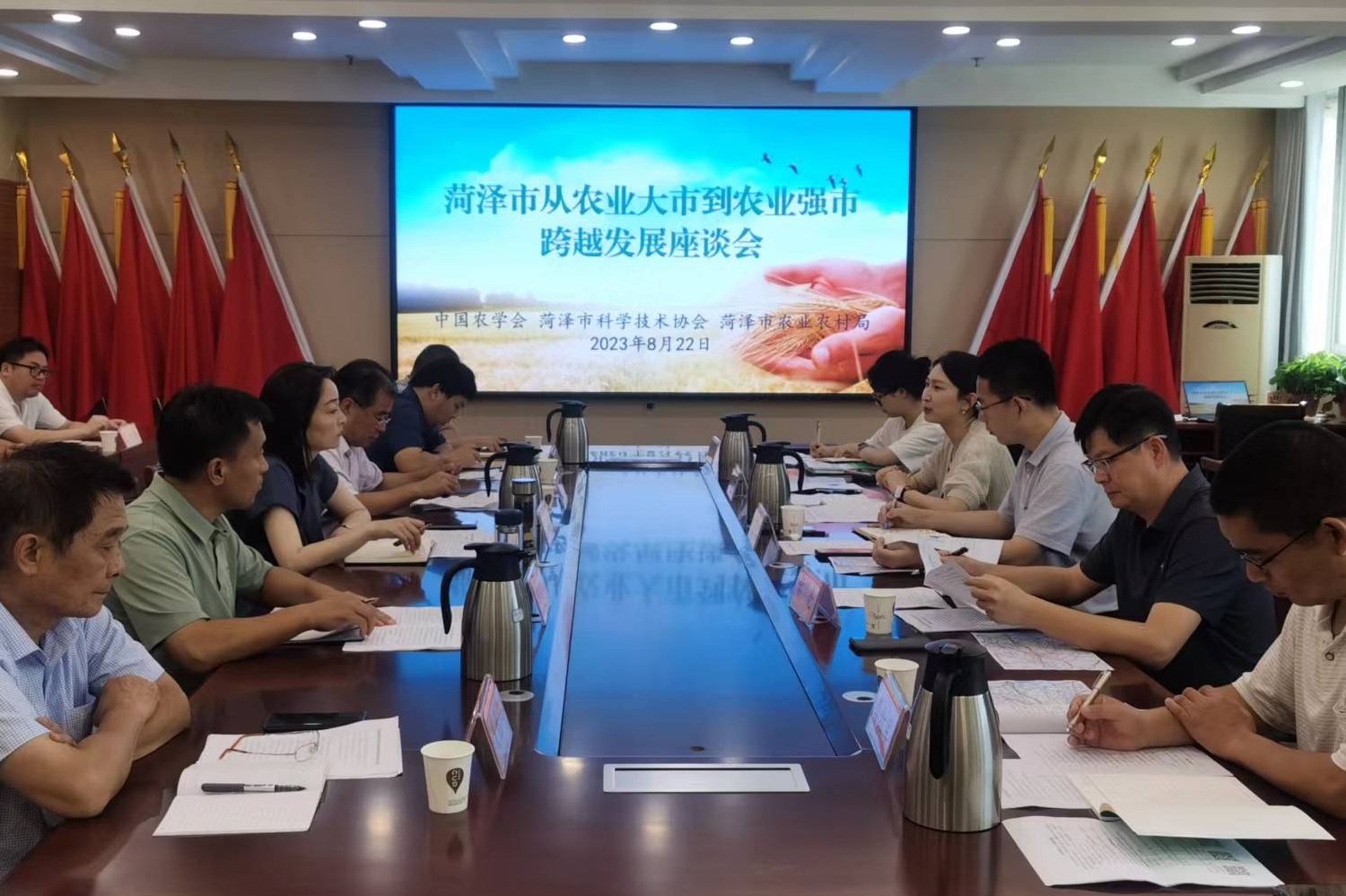 为促进菏泽市农业跨越发展,菏泽市科协立项《菏泽市从农业大市向农业强市跨越式发展对策研究》智库课题,委托中国农学会组织专家团队开展研究。22日上午,召开了“菏泽市从农业大市向农业强市跨越发展座谈会”,课题组专家、市科协、市农业农村局、市发改委、市统计局、市林业局、市科技局、市人社局、市文旅局、市动物疫病预防控制中心等单位有关负责同志参加会议。