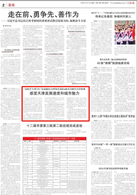 天津日报:“高校学子津门行”活动邀请13所知名高校640余名师生在津参观 感受天