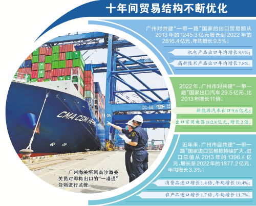 在便捷的国际物流通道和更为低廉的运输成本支持下,广州对共建“一带一路”国家进出口稳步增长,出口商品结构不断优化。
