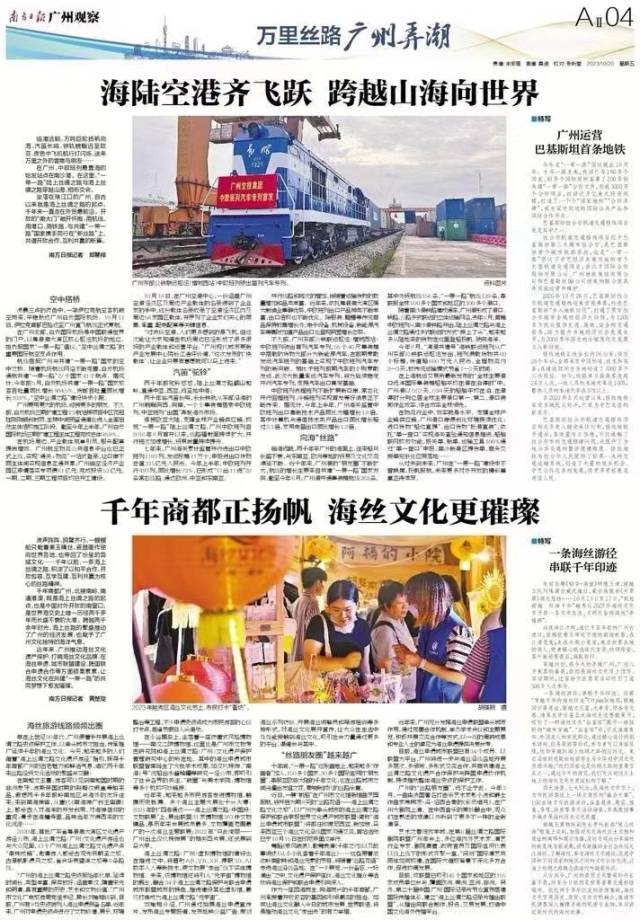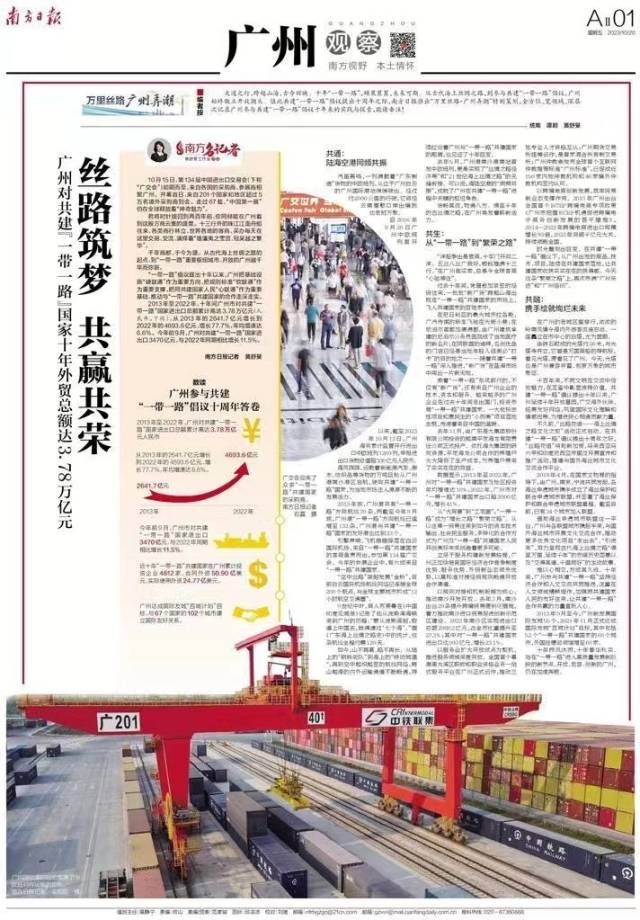大道之行,跨越山海,古今辉映。十年“一带一路”,硕果累累,未来可期。从古代海上丝绸之路,到参与共建“一带一路”倡议,广州始终傲立开放潮头。值此共建“一带一路”倡议提出十周年之际,南方日报推出“万里丝路·广州弄潮”特别策划,全方位、宽领域、深层次记录广州参与共建“一带一路”倡议十年来的实践与探索,敬请垂注!