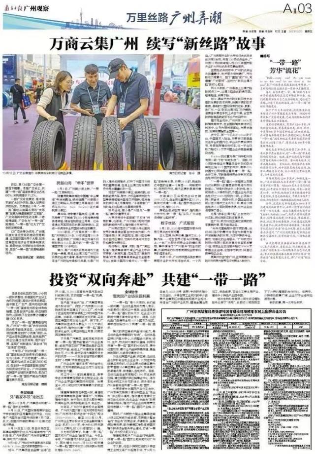 作为“一带一路”重要枢纽城市,广州与“一带一路”合作伙伴间的合作不断走深走实。从标志性项目到惠民生的“小而美”项目,从产品出海到品牌出海,越来越多广州企业通过投资并购、海外设厂等,实现广州制造从“卖全球”到“全球造”的转变。