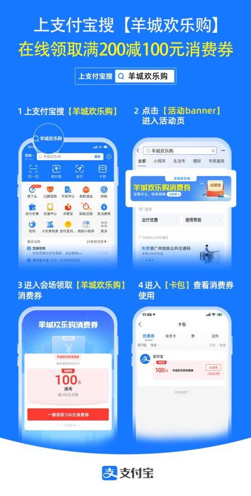 参展友商只需在领券时间内上支付宝搜索“羊城欢乐购”,根据提示操作,即可获得消费券。