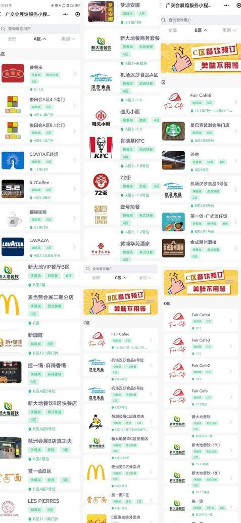 为解决友商们的就餐需求,展区内分别设置了A、B、C、D四个就餐区。