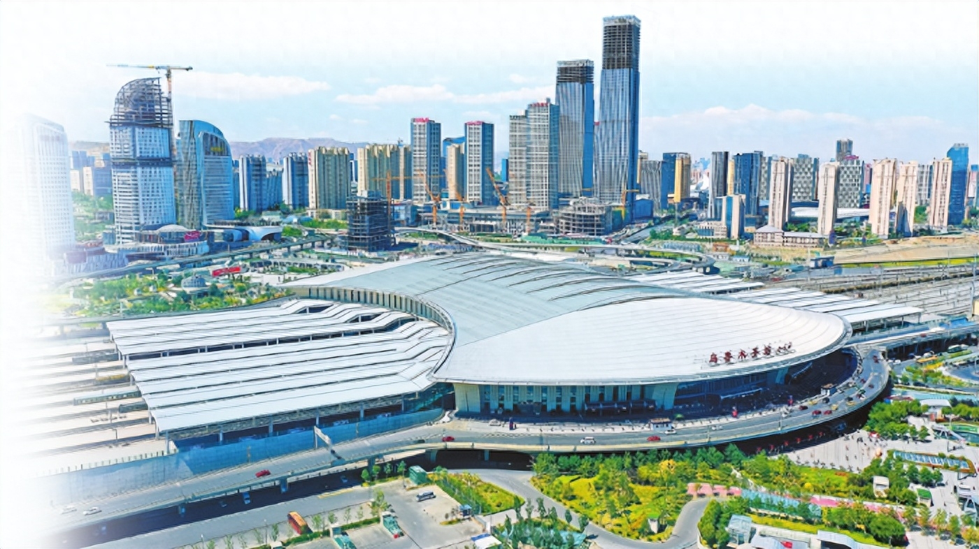 乌鲁木齐站,周边一座座高楼拔地而起,这里已成为乌鲁木齐市新地标。(无人机拍摄)(闫鹏摄)