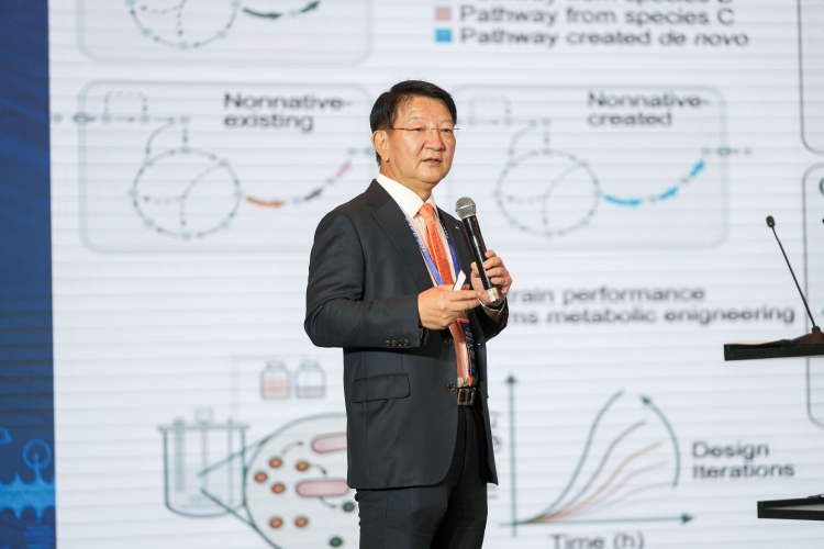 李相燁在题为“用于可持续生产的化学制品、燃料和材料的生物技术”的演讲中表示,生物科技革命与可持续社会的发展紧密相关。他以AI技术用来预测蛋白质的功能为例,强调其对于开发化学物质工具的重要性,同时介绍了生物工程对人类健康影响的案例,以及AI和大数据在生物工艺流程制造、产品设计中的日益显著的作用。