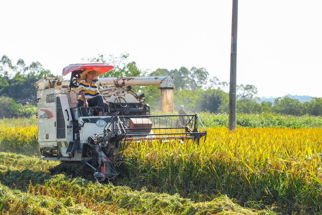 广州市黄埔区洋田村的隆平田水稻丰收。