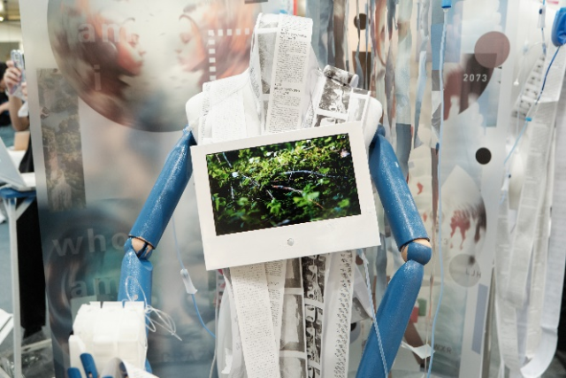 很幸运能够参加这次课程,虽然大学是数学统计背景,不过曾经几年课外美术的学习也让我有时会想是否平行宇宙里有一个美术生的自己。在这一次活动中结识可爱的同学、老师,大家一起努力、开心地做作品,自己也更感受到跨领域交融的魅力。世界上有多种语言,不同专业背景的人也有各自的“语言”,有时候不是技术多么晦涩,艺术多么抽象,而是我们在交流时没有走向对方的语系。