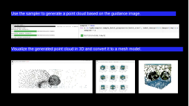 此外,团队还尝试将图片转换为3D点云生成,拓展生成的可能性。