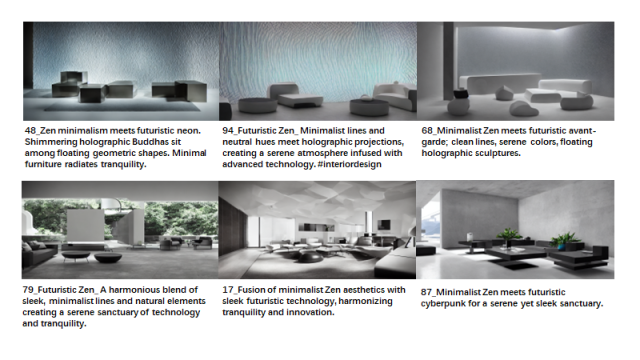 一是ChatGPT与stable diffusion的连接,自动生成prompt提示词和图片。用户只要输入想要的关键词“冥想室”,GPT便会生成多种作图提示词如“未来风格/极简风格/室内如何布置的冥想室”,再自动连接SD生图。