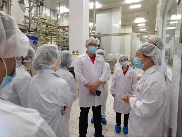 与会人员现场观摩黄埔区辖内燕塘乳业生产车间。