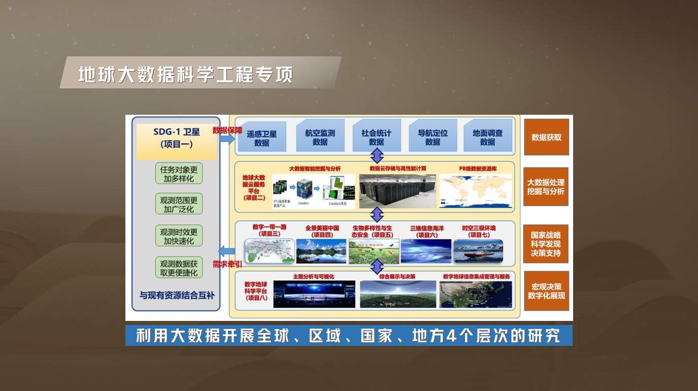 2018年1月1日,中国科学院正式启动实施A类战略性先导科技专项“地球大数据科学工程”,致力于构建包含资源、环境、生物、生态等多个领域的大数据与云服务共享平台,推动地球大数据领域的技术创新与地球系统科学的重大突破和科学发现。