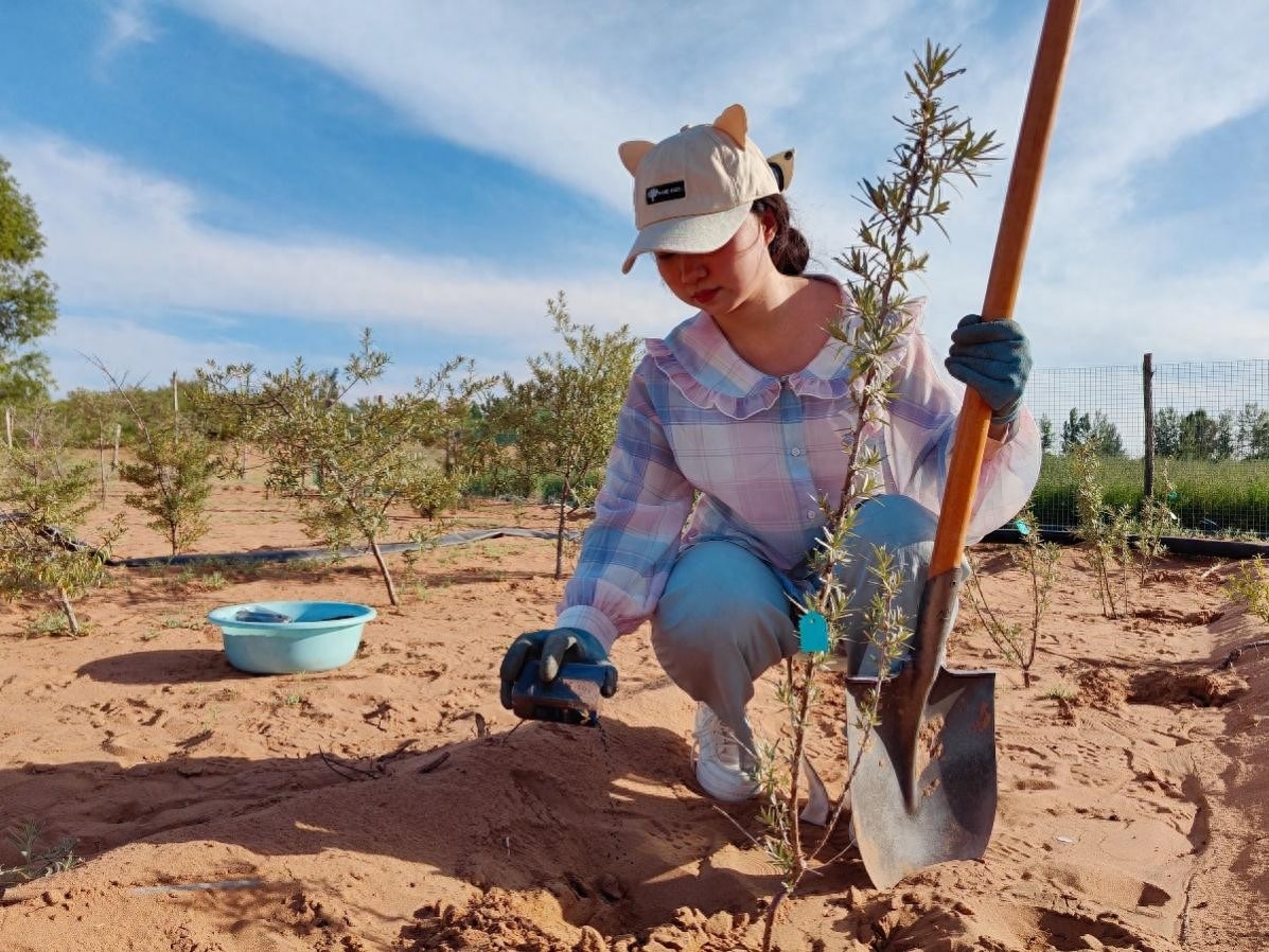 在陕西区赛的路演现场,沙城棘行者团队队员崔长珍在答辩时哽咽了。当时,评委请她谈谈入驻小院后自己的变化。她所在的榆阳沙棘科技小院驻扎在毛乌素沙地南缘,以促进当地沙棘产业振兴为核心工作。