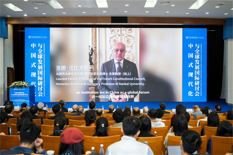 法国宪法委员会主席、南开大学名誉博士、名誉教授洛朗·法比尤斯在致辞中指出,明年是中法建交60周年,很期待通过本次研讨会来思考中国式现代化的发展历程,促进中法两国人民增进了解、加强合作。当前,人类面临气候变化这一严峻挑战,亟需全球性的解决方案,推动可持续的现代化。因此,各国政府在着眼短期目标的同时,更应重视长期战略的制定,并着力构建和谐的国际合作关系。他表示,多边主义是前进道路的必然选择,他将始终坚定支持多边主义,努力推动世界各国实现互利共赢。