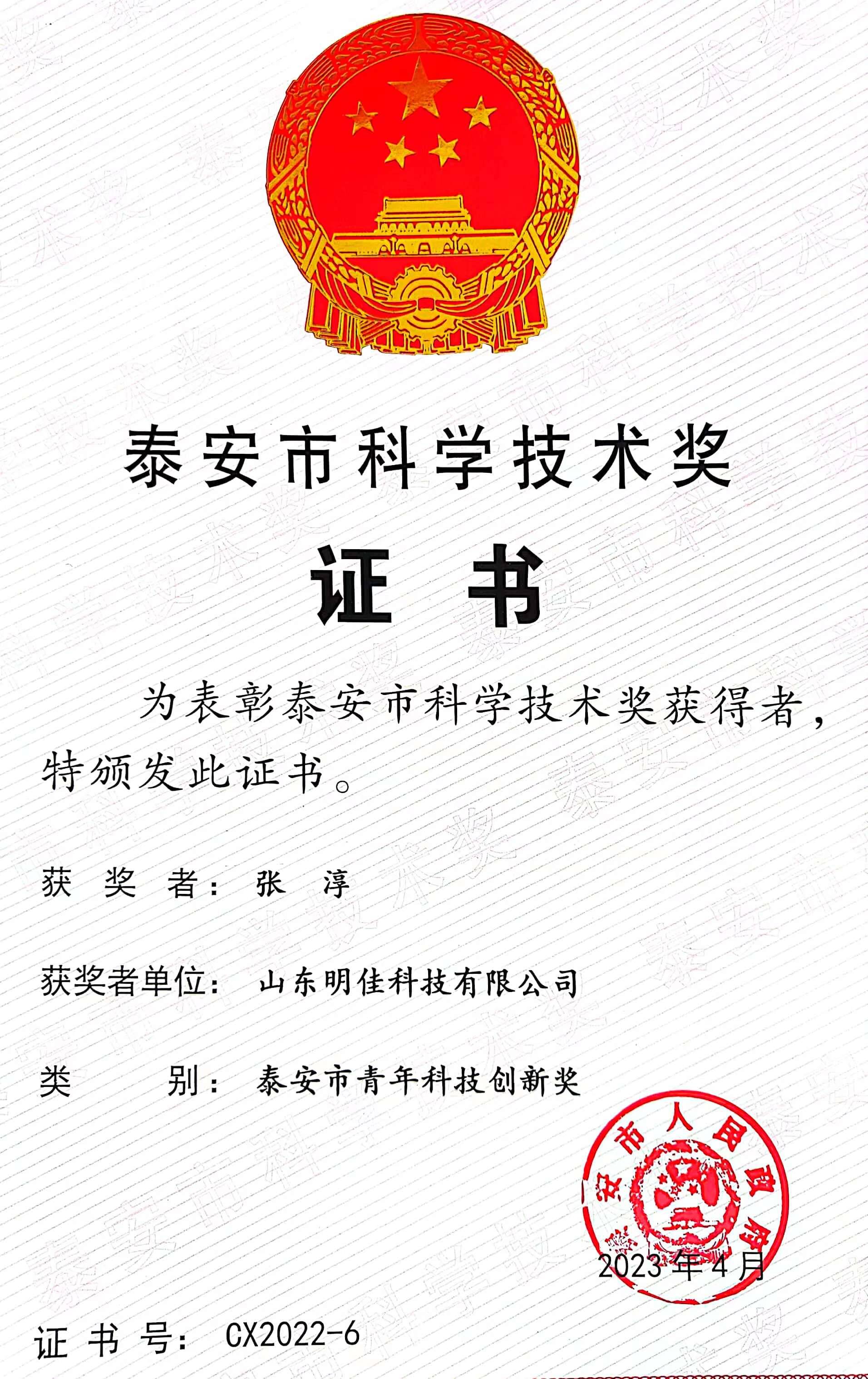 会议宣读泰安市人民政府《关于2022年度科学技术奖励的决定》,其中泰安市青年科技创新奖6个,科学技术进步奖100项。岱岳区共获得青年科技创新奖1个,科技进步奖8个。山东明佳科技有限公司张淳获得泰安市青年科技创新奖,山东芝圣堂生物科技有限公司荣获科学技术进步奖一等奖,中铁十四局集团第二工程有限公司、山东省地质矿产勘查开发局第五地质大队、山东鲁杰生物制药有限公司3个项目荣获二等奖,泰山玻璃纤维有限公司、中铁十四局集团第二工程有限公司、山东省地质矿产勘查开发局第五地质大队4个项目荣获三等奖。