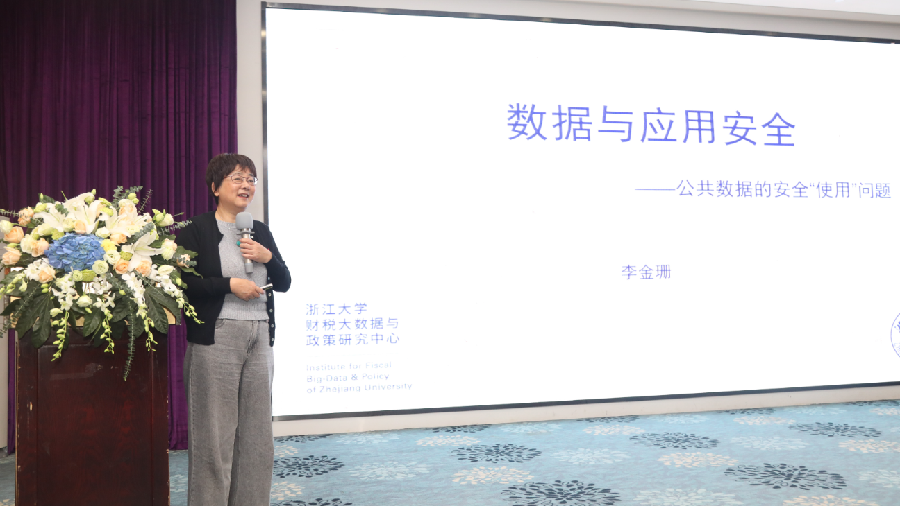 浙江大学财税大数据与政策研究中心主任李金珊作了题为《数据与应用安全》主题报告,从数据与数据安全、数据安全治理、数据要素、公共数据应用安全等方面进行了阐述。