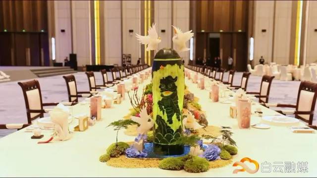 整个餐桌的主题布置诠释了包容互鉴、相互尊重、融合共生、贸易互通、一路繁花的丝绸之路精神。