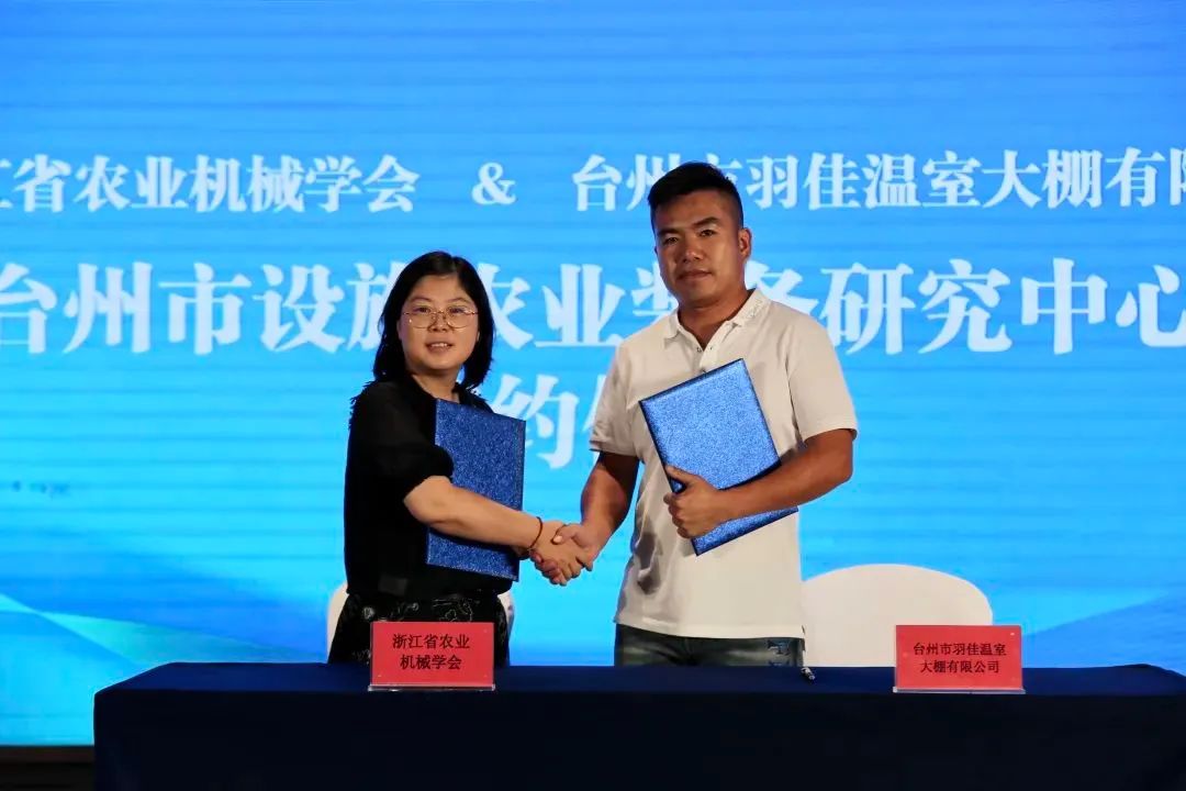 会上,浙江省农业机械学会与台州市羽佳温室大棚有限公司项目举行了签约仪式。