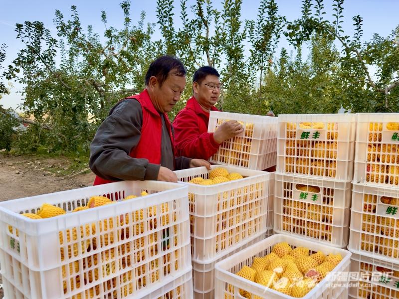 眼下,温宿县种植的13万余亩苹果进入采摘期,果农加紧采摘上市销售。