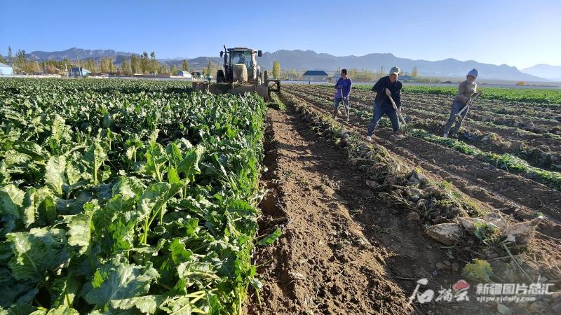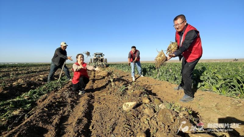 10月22日,察布查尔县教育局驻孙扎齐牛录镇郎喀村工作队队员帮助村民采收甜菜。华岩明 摄