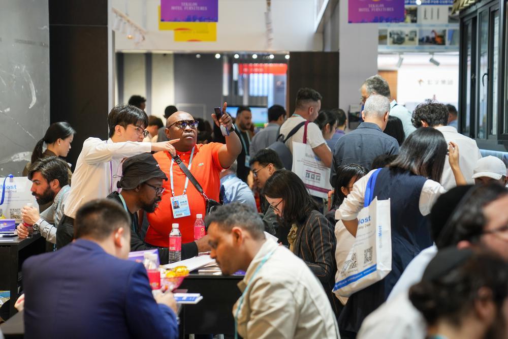 展厅内人潮涌动,采购商与参展商热情交流