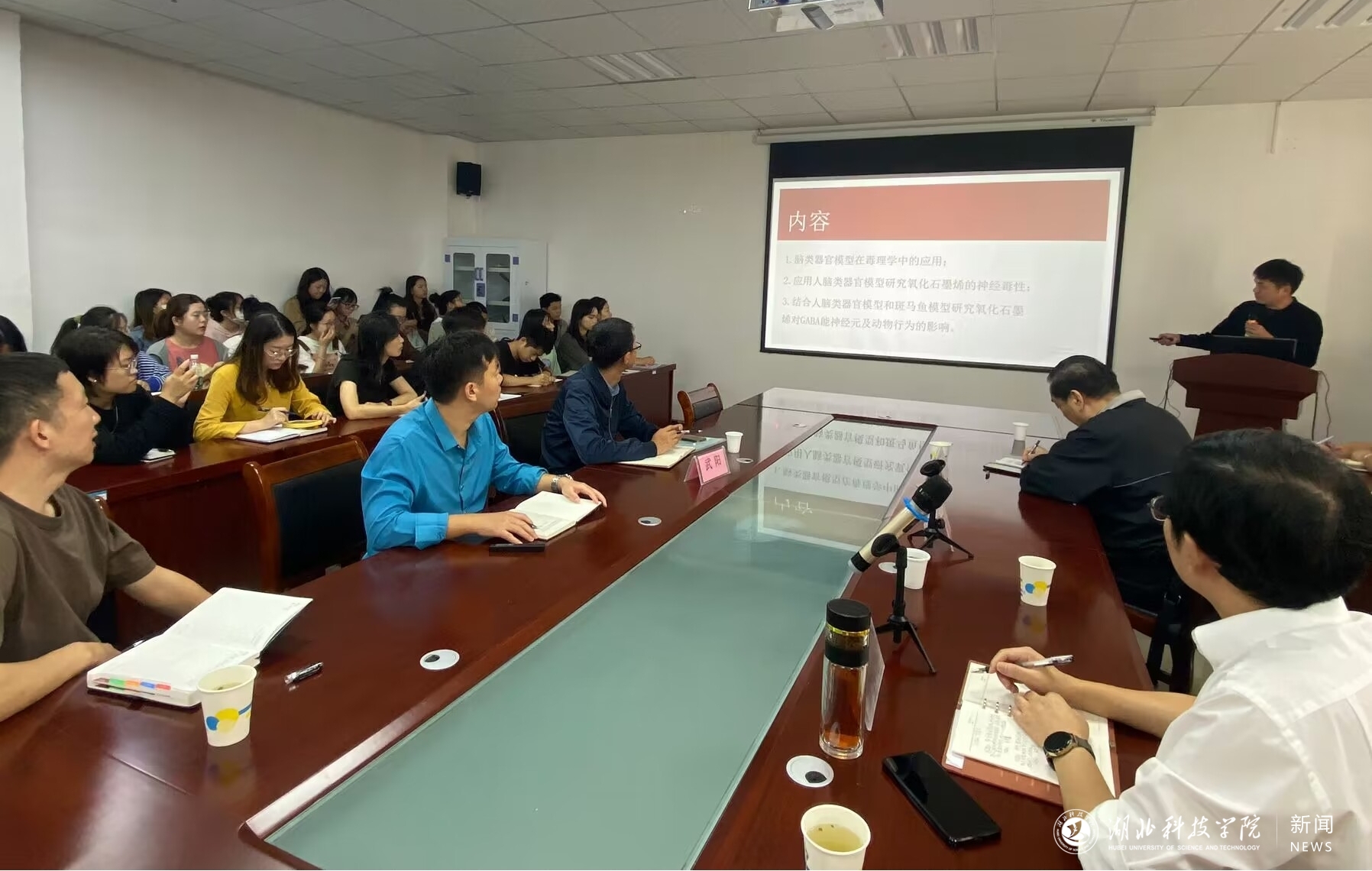 南华大学公共卫生学院曹毅教授应邀到基础医学院作题为《应用人脑类器官和斑马鱼模型研究氧化石墨烯神经毒性及其分子机理》的学术报告。基础医学院科研骨干、全体硕士研究生参加,讲座由院长蔡飞主持。