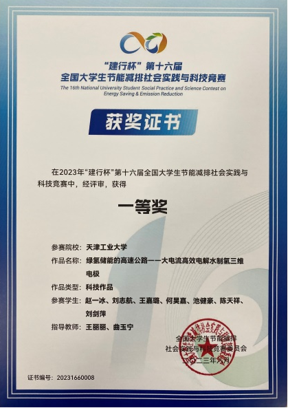 天津工业大学学子首获“全国大学生节能减排社会实践与科技竞赛”全国总决赛一等奖