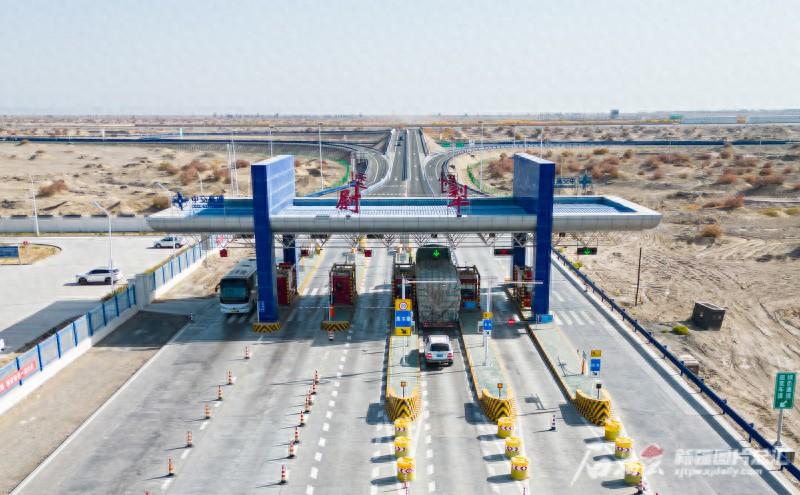 10月23日,车辆通过G0711线乌鲁木齐至尉犁高速公路库尔勒南互通至尉犁段尉犁收费站。汪志鹏摄