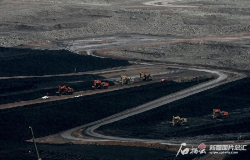 9月15日,大型机械正在新疆天池能源有限责任公司南露天煤矿矿区作业(资料图)。记者 李瑞摄