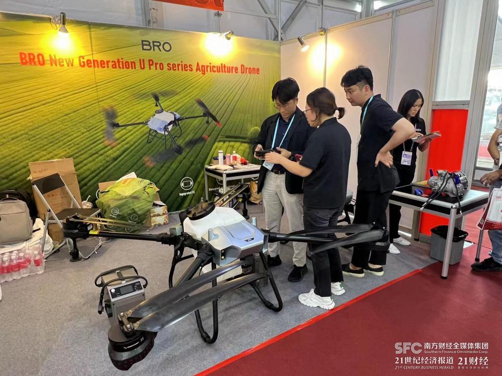 在本届广交会上,部分农机企业也展出了主打节能减排和能够远程调度的产品。在A区8.0展区,一台充电式的无人机周围人来人往,展位负责人不停向采购商介绍产品情况。