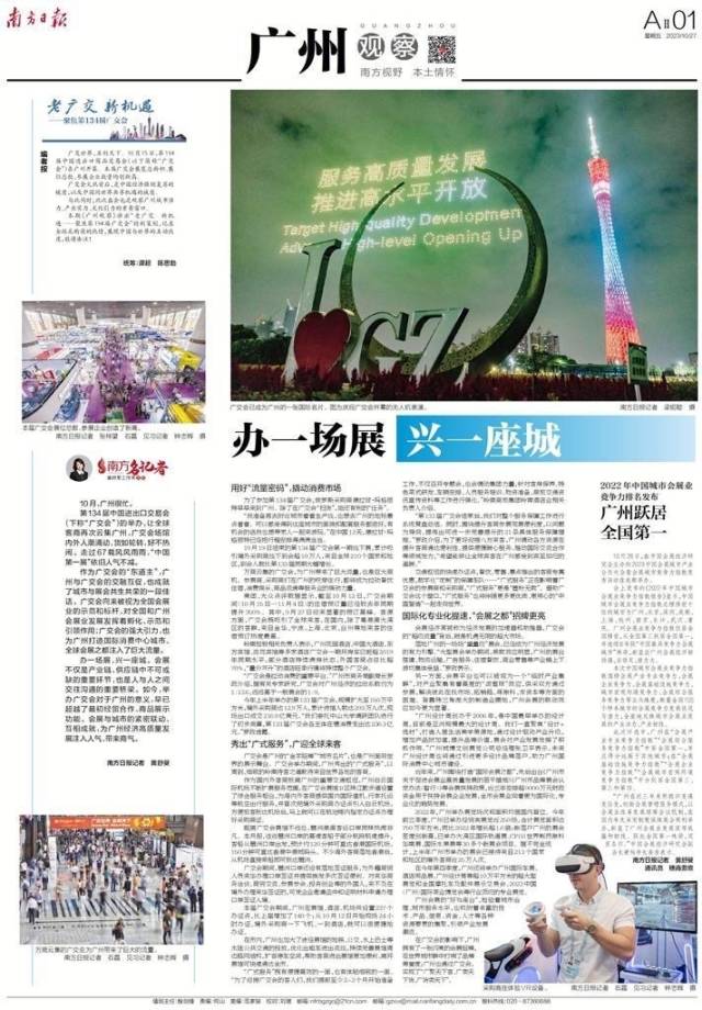 办一场展,兴一座城。会展不仅是产业链、供应链中不可或缺的重要环节,也是人与人之间交往沟通的重要桥梁。如今,举办广交会对于广州的意义,早已超越了最初经贸合作、商品展示功能。会展与城市的紧密联动、互相成就,为经济高质量发展注入人气、带来商气。