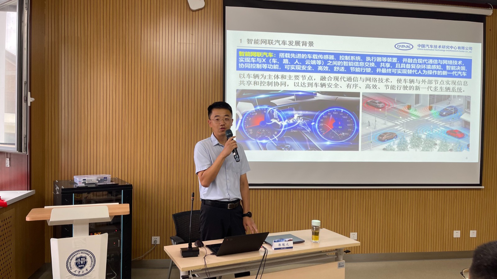 天津大学凌国维教授、中汽中心主动安全首席专家郭魁元高工第一天分别讲述了《新能源汽车电池技术及发展趋势》、《智能网联汽车测试技术》专业课程。