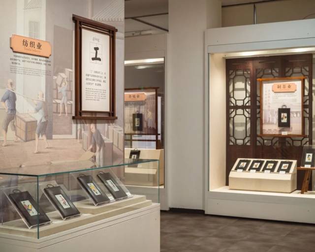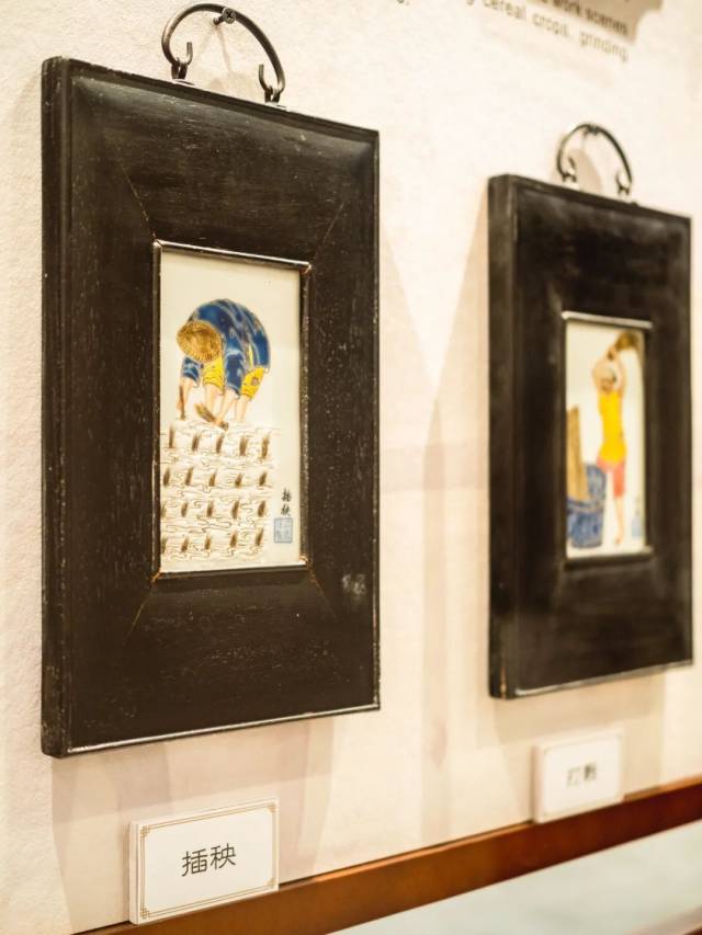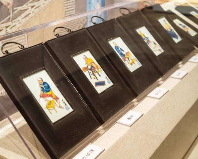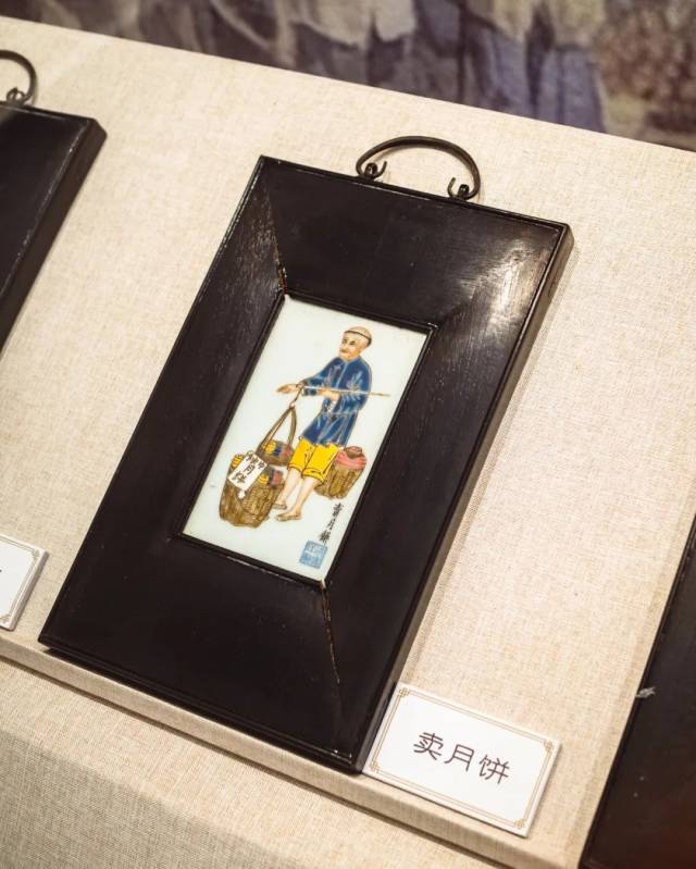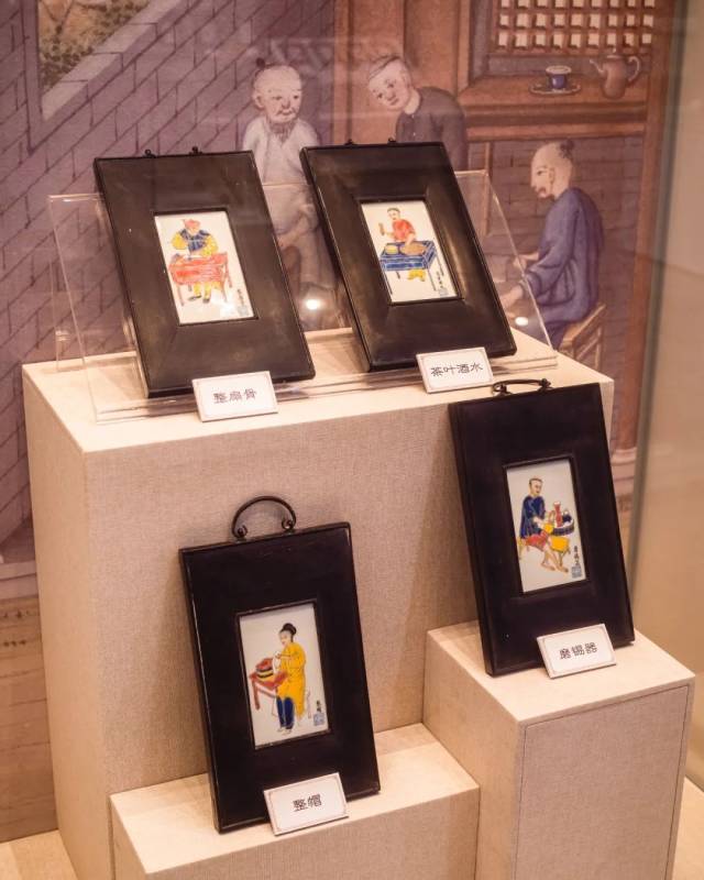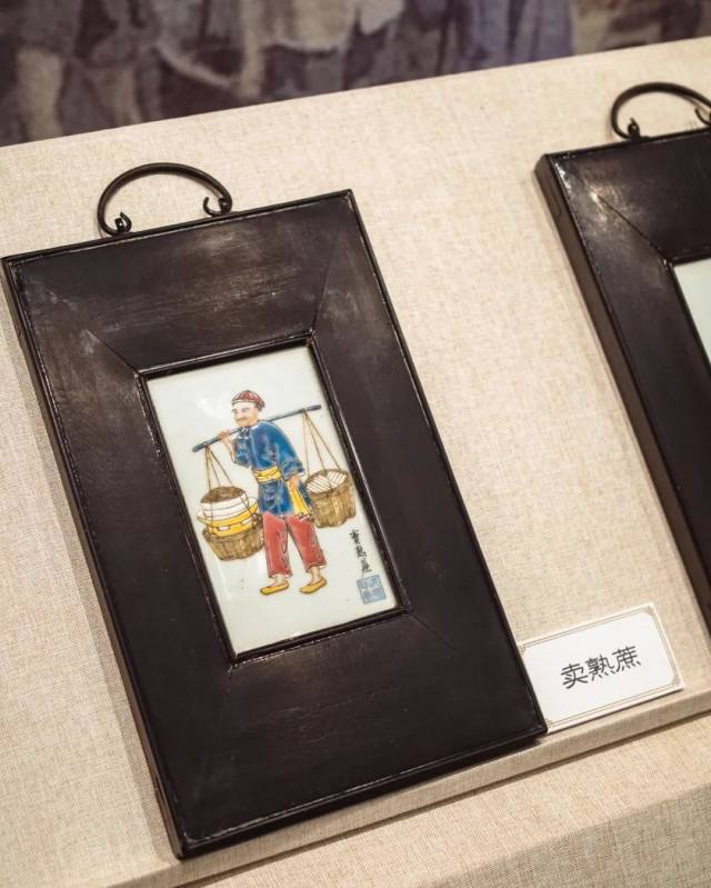 在一些展厅,游客还能看到一些有趣的展品,比如这个粉彩瓷板画专题展,展示了近代各行各业从业者的瓷板画像,可以说是烧绘在瓷板上的“百工记”。