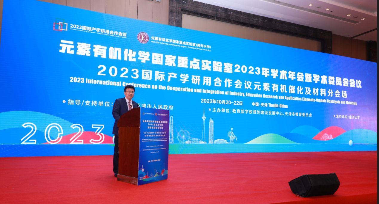 本次会议同时是在国家教育部和天津市人民政府的指导支持下,由教育部学校规划建设发展中心和天津市教育委员会主办、南开大学承办的“2023国际产学研用合作会议——元素有机催化及材料国际研讨会”分会。会议就元素有机催化、有机功能分子等议题展开了充分的研讨,旨在为国内外同行展示相关领域的前沿研究动态,搭建国际化交流平台,增进国内外学者间的交流与合作,推动产学研深度融合,促进更多的研究成果转化落地。