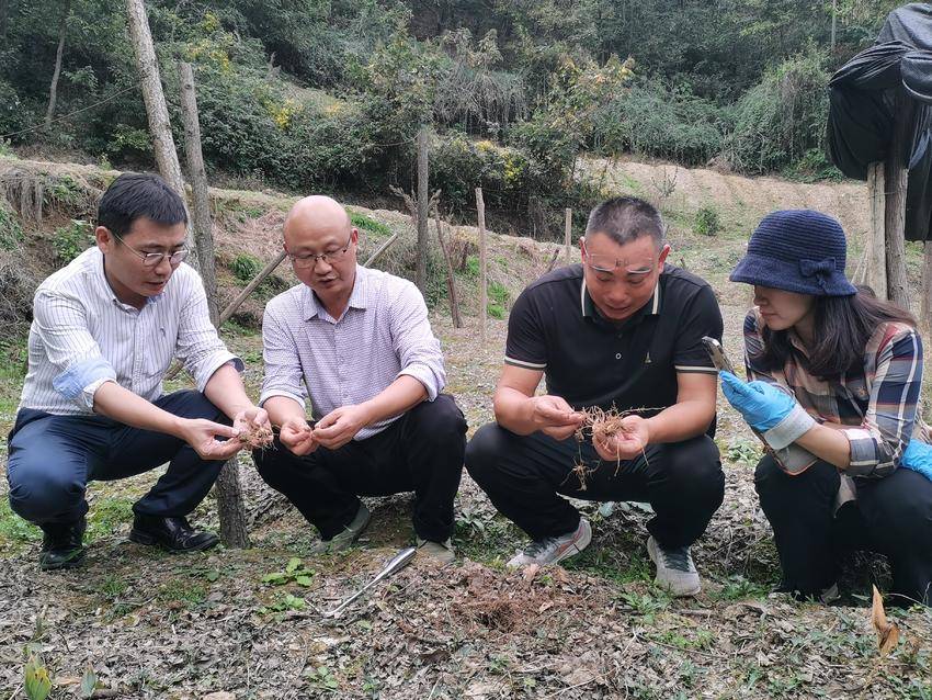 湖北中医药大学专家团队、市农科院专家在君山药谷负责人谢辉的陪同下,查看了林下黄精种植基地、育苗基地及黄精种质资源圃等,并指导工人如何科学种植黄精。