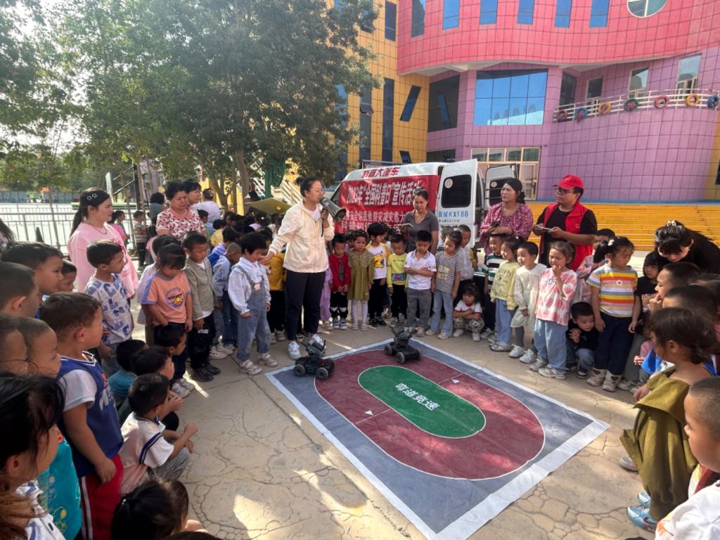 科普展示活动中,满载科普展品的“科普大篷车”受到了幼儿园小朋友们的热烈欢迎,科普讲解员耐心讲解“上学的路上”等各种流动科技展品的原理,让孩子们零距离“触摸”科技的神奇。