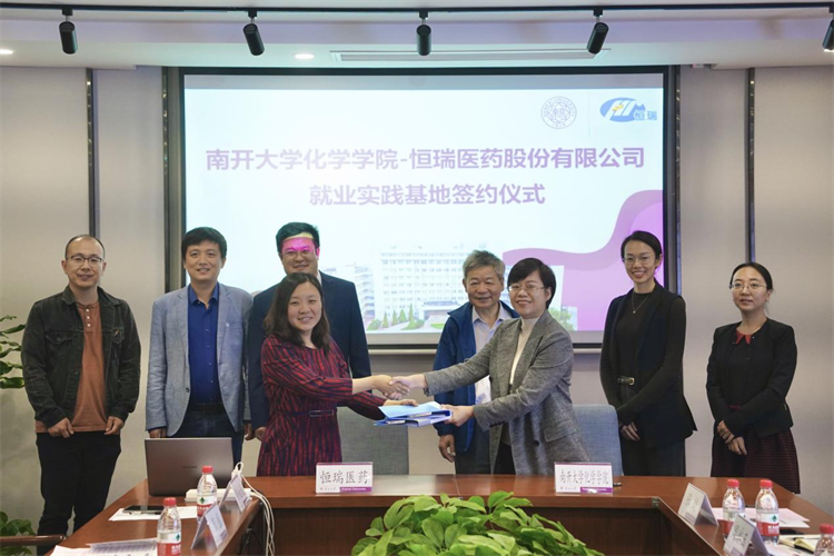 刁立达、傅媛媛代表双方共同签订了《南开大学化学学院-恒瑞医药股份有限公司就业实践基地协议书》。