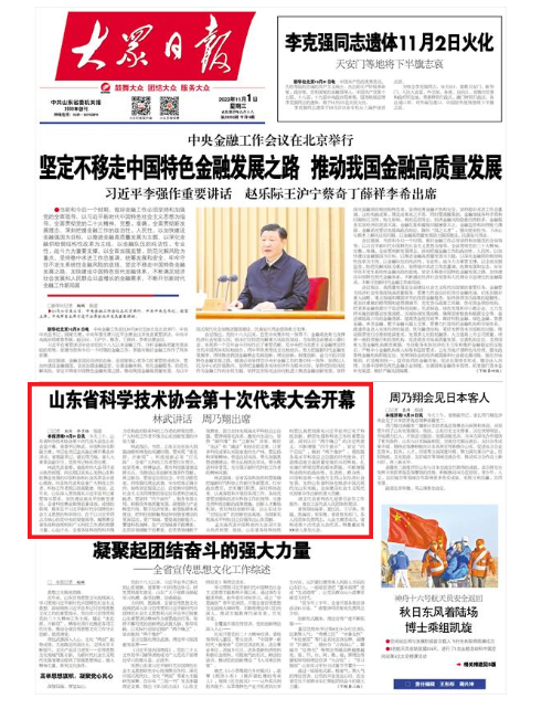 大众日报:山东省科学技术协会第十次代表大会开幕 林武讲话 周乃翔出席