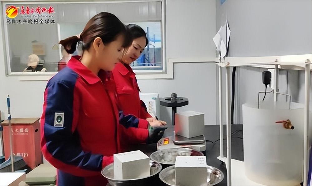 10月31日,在新疆减隔震工程技术研究院(有限公司),工作人员正在对混凝土块进行检测。记者牟敏摄