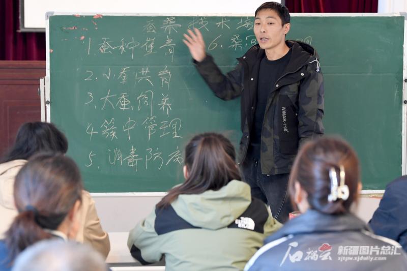 11月1日,田小平为养蚕户讲解养蚕技术。