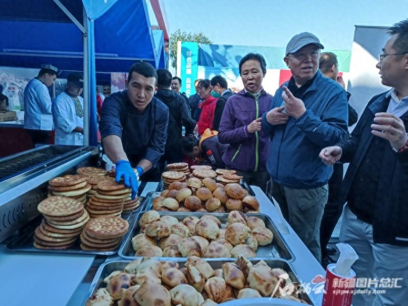 第十三届新疆农产品北京交易会期间,工作人员在现场展示制作新疆特色美食。石榴云/新疆日报记者 刘毅摄