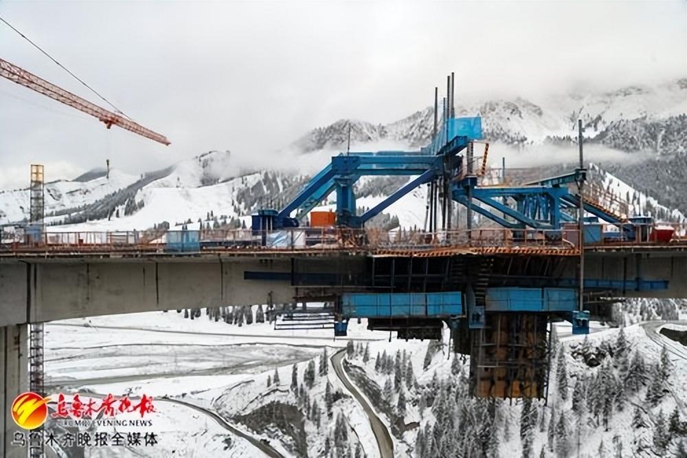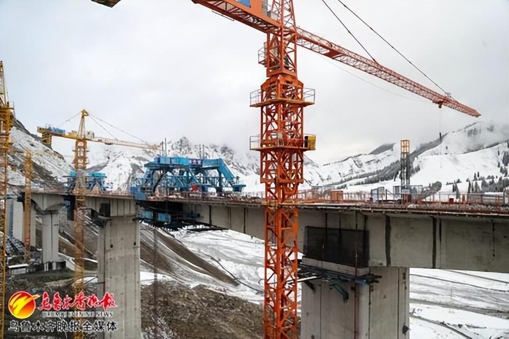 当天,记者来到乌鲁木齐县后峡2号大桥施工场地,看到该桥紧邻乌鲁木齐河,周围地形陡峻,平均海拔约2000米,山区飘雪温度较低。