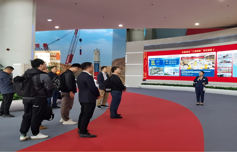 参观环节,与会专家学者们观看了企业宣传片,并在现场讲解人员的介绍下,参观了三一集团展厅和灯塔工厂18号厂房。专家们对18号厂房里干净整洁的流水线、忙碌有序的机器人和机械臂以及大屏幕上的全景信息化管理系统留下了深刻的印象,对三一集团在数智化、低碳化建设方面的工作感到由衷地赞叹。