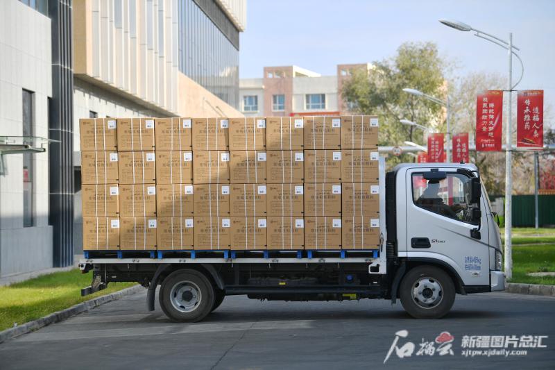 11月2日,工作人员在新疆维吾尔药业有限责任公司拉运药品。天山网/新疆日报记者 邹懿摄