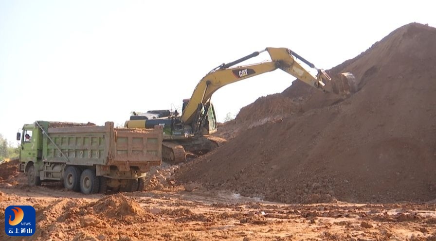 管智勇告诉记者,为了确保完成各节点工期任务目标,神堂铺路段每天有翻斗车、大型挖掘机余辆、压路机、装载机、推土机等各类工程车20余辆施工作业,每天完成土方运输4000方,快马加鞭推进通山大道建设进度。