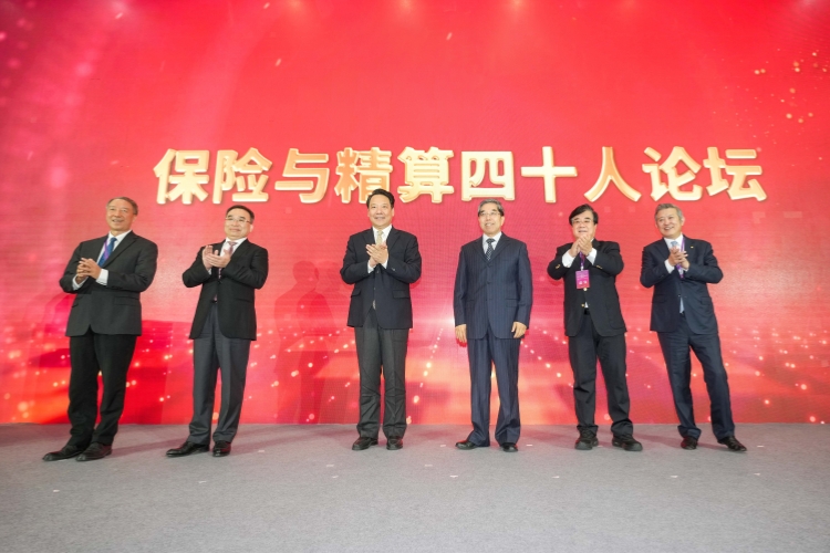 大会上,马建堂、周延礼、王文灵、陈东升、陈雨露、卓志共同按动启动屏幕,标志着保险与精算四十人论坛正式开启。