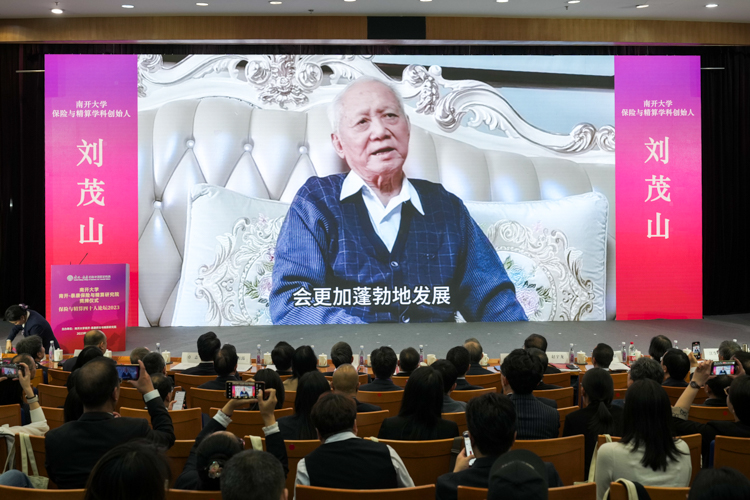南开大学保险精算学科创始人刘茂山教授在视频致辞中回顾了南开保险学科和精算学科的发展起源。今天,南开大学南开-泰康保险与精算研究院的正式揭牌,标志着南开大学保险精算的教育发展进入新的阶段,具有重要的现实意义和深远的历史意义。在当前高科技迅速发展的时代,以往的保险和精算的做法、经验均可借鉴,但仍需发展。当前有很多新的课堂、新的项目需要我们去研究,特别是国际的、尖端的科学研究。研究的目的都是为我国经济的发展服务,为人民的身体健康、生活发展服务。他表示,相信南开大学保险和精算学科将更加蓬勃地发展,希望现在的科研人才能够更好地发挥自身的“光”和“热”,为我国保险和精算事业发展作出新的更大贡献,把南开保险和精算学科建设推向一个新的高潮。