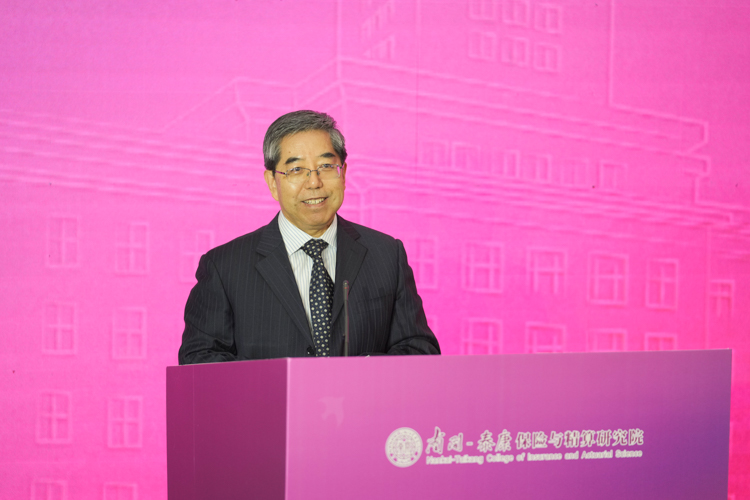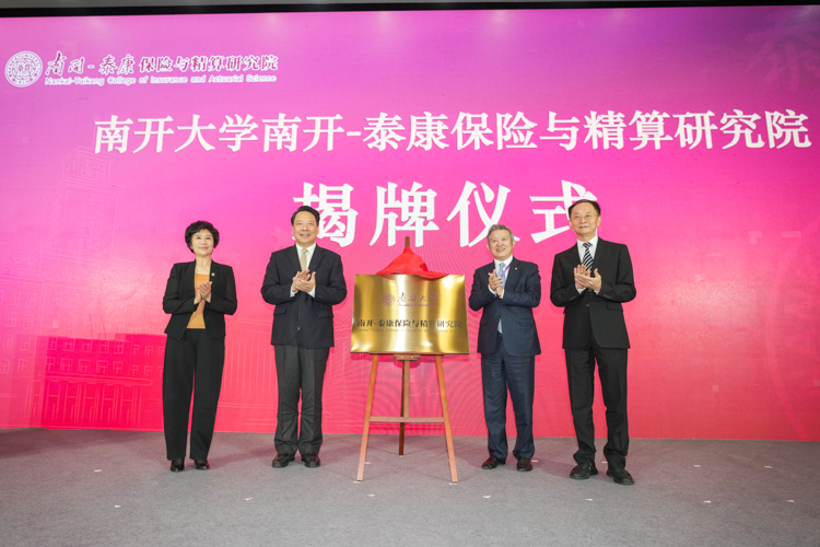致辞后,陈雨露、陈东升、张文中、杨克欣共同为南开-泰康保险与精算研究院揭牌。