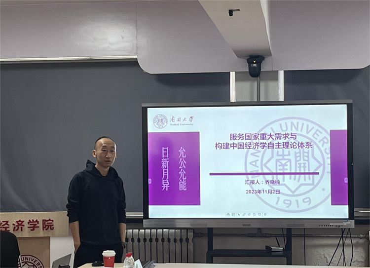 南开新闻网讯(通讯员 张子扬 孙瑞婷)11月2日下午,由南开大学党委学生工作部主办、经济学院研究生课外指导中心承办的2023年秋季学期“导师有约”第一期讲座在经济学院高层十楼会议室成功举办。本次活动邀请到南开大学经济学院乔晓楠教授做“服务国家重大需求与构建中国经济学自主理论体系——经济学人成才报国之路”主题讲座。